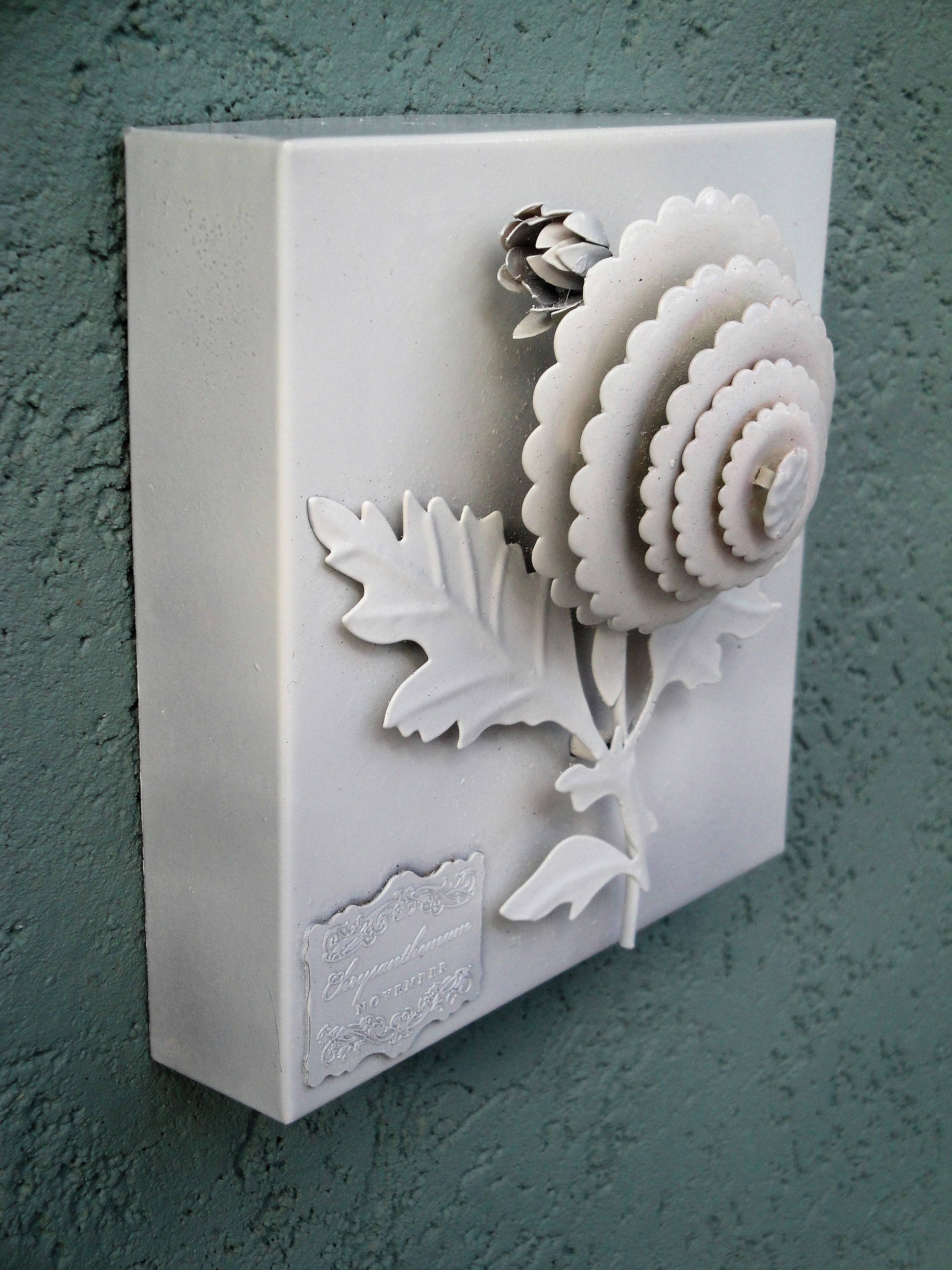 Winter White Metal Wall Decor of Pop Out 3D Style. Vintage Wall Decor.