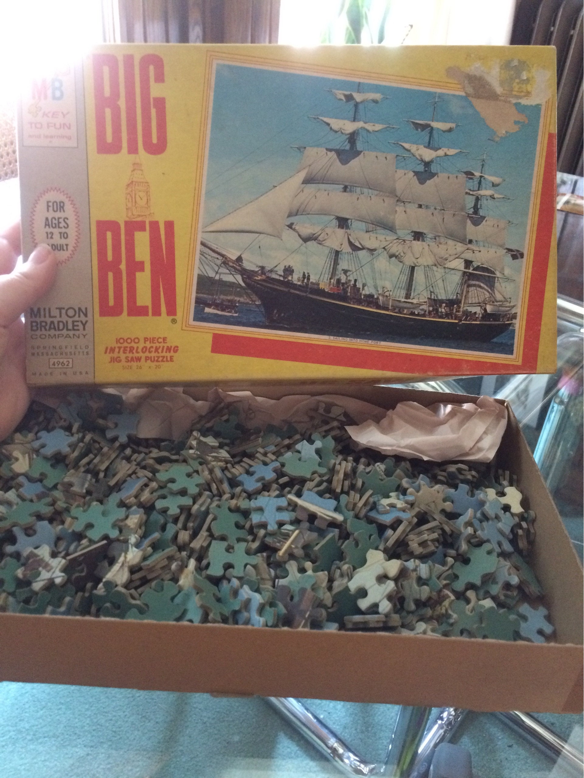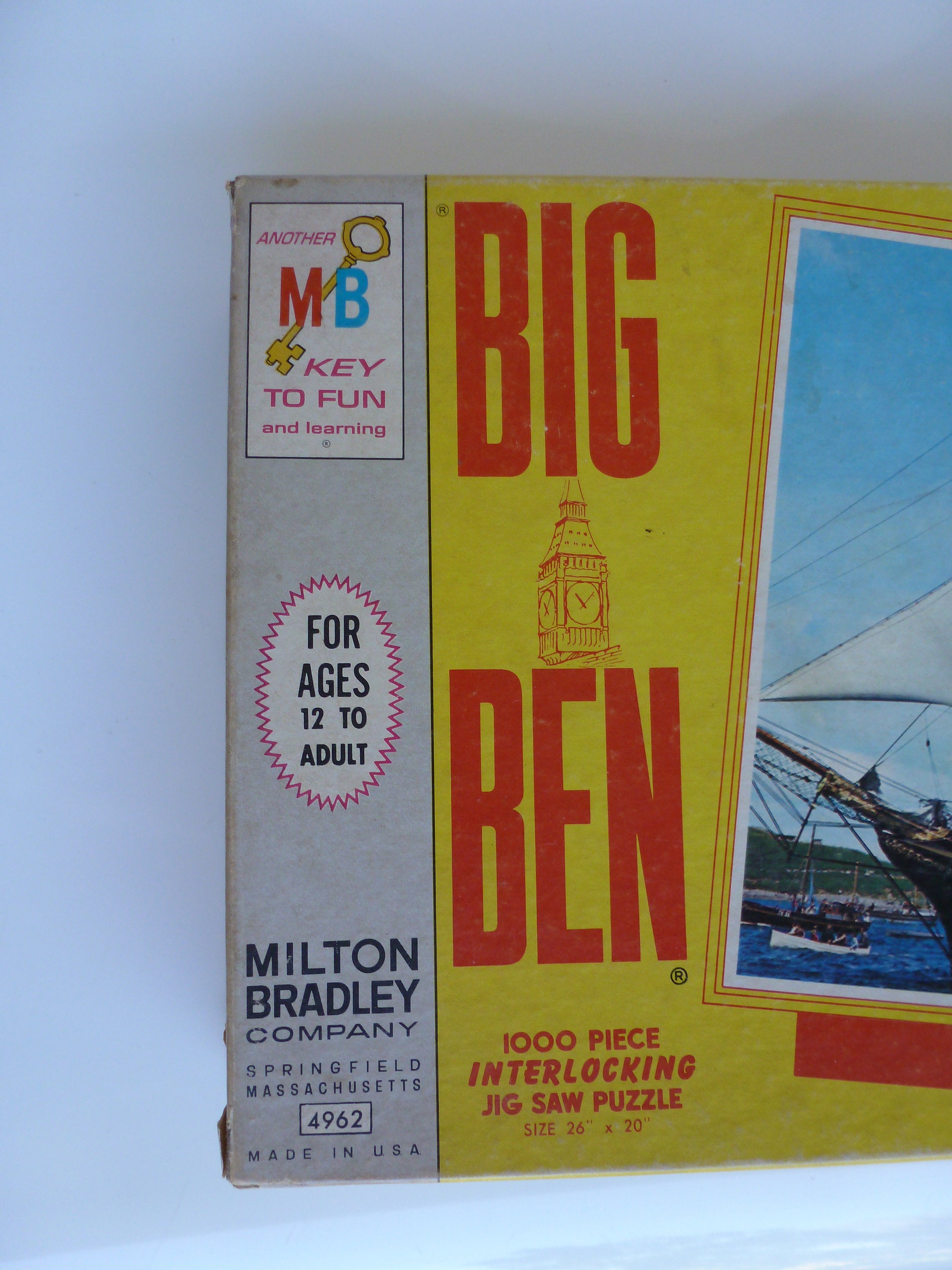 1965 Milton Bradley Jigsaw Puzzle No. 4962, featuring a classic sailing ship entering the harbor.